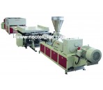 PVC free foaming, PVC wood-plastic sheet production line, PVC sub-skin foaming sheet extrusion production line equipment is composed of twin screw extruder, sheet mold, vacuum shaping and ten roller traction and other auxiliary parts.