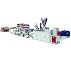 PVC free foaming, PVC wood-plastic sheet production line, PVC sub-skin foaming board production line is composed of twin screw extruder, sheet mold, vacuum shaping and ten rollers traction and other auxiliary parts.