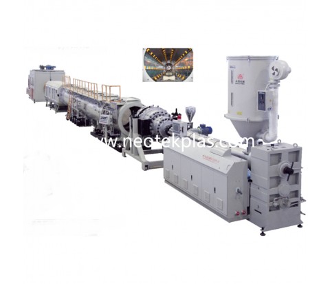 Single extruder and haul-off unit adopt international brand AC inverterspeed control, Vacuum pump and haul-off motor use premium brand.Haul-off can be equipped with 2/4/6/8/10/12 belt according to the pipesizes. Cutter can be swarfless, saw blade, or planetary cutting type.The line featured by stable performance and high efficiency.This linecan allso produce PE PPinner spiral pipe,hollow pipe, and foamingpipe by changing the configuration.