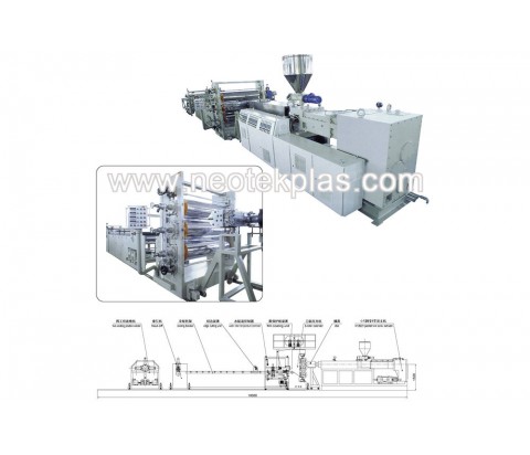 該設(shè)備用于生產(chǎn)粉料PVC擠出透明片,可代替壓延PVC片材