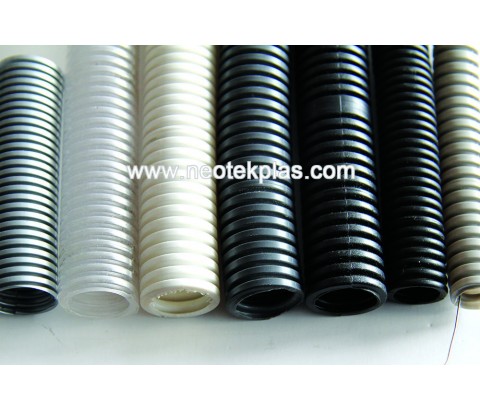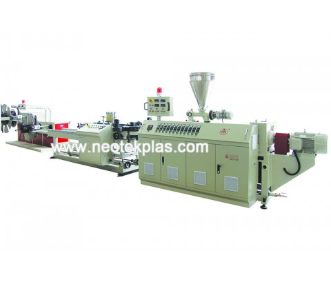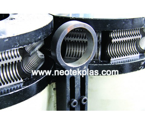 生產(chǎn)線配置不同的擠出機(jī)可生產(chǎn)PE、PP、PVC等材料的單臂波紋管。 波紋管成型機(jī)可生產(chǎn)一模雙徑的小單臂波紋管,降低模塊成本,減少更換模塊的時(shí)間,成型速度最高為25m/min
