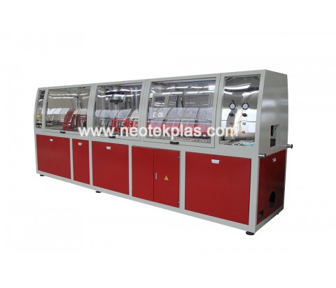 YF系列PVC異型材生產(chǎn)線主要用于PVC門窗型材,線槽型材擠出。該生產(chǎn)線可以根據(jù)筆筒型材斷面及模具,選用不同規(guī)格的平雙(錐雙)雙螺桿擠出機(jī),并配置相應(yīng)的真空頂型臺(tái),牽引機(jī),切割機(jī),翻料平臺(tái)等輔助設(shè)備。