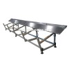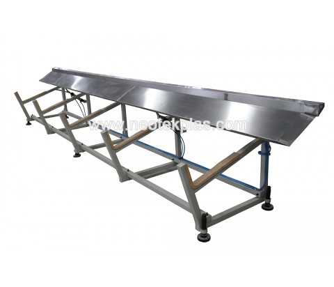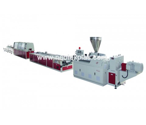 YF系列PVC異型材生產(chǎn)線主要用于PVC門窗型材擠出。該生產(chǎn)線可以根據(jù)不同型材斷面及模具,選用不同規(guī)格的平行(錐形)雙螺桿擠出機(jī),并配置相應(yīng)的真空定型臺,牽引機(jī)、切割機(jī)、翻料平臺等輔助設(shè)備。